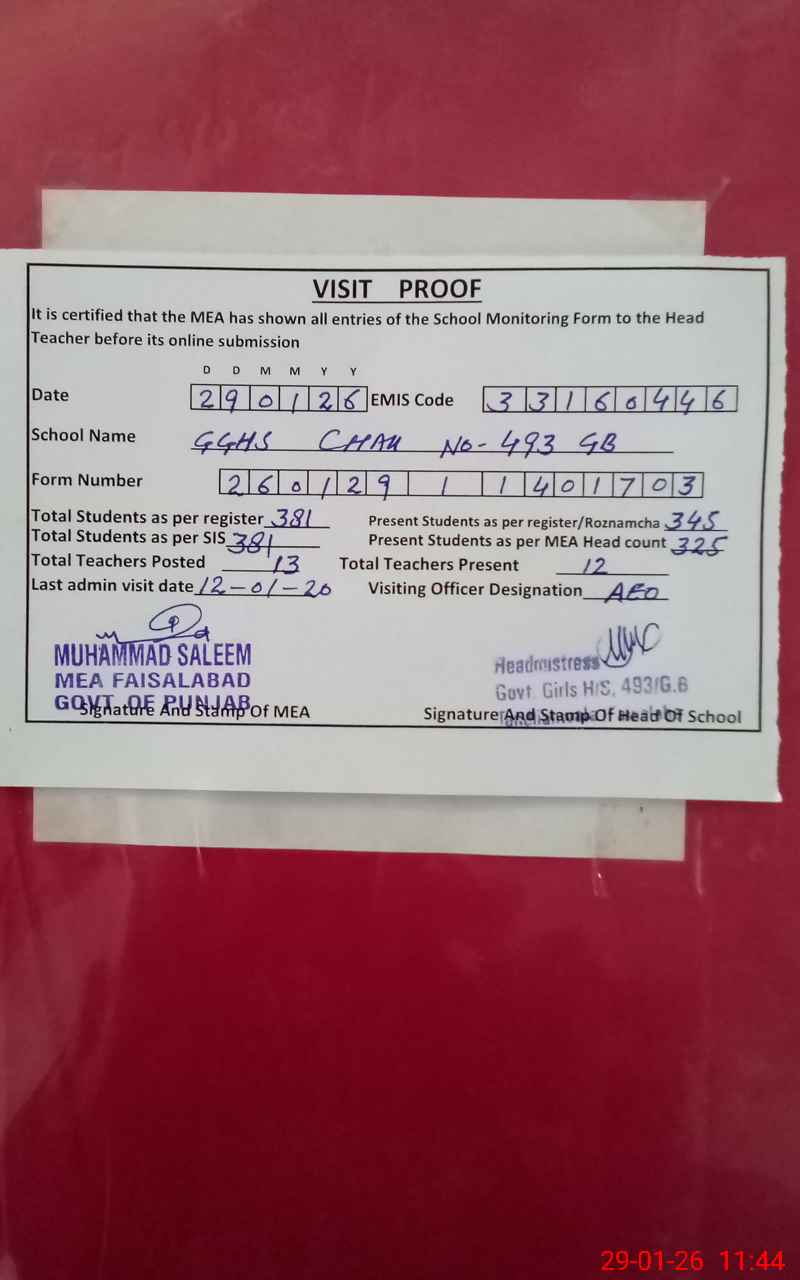| EMIS Code: 33160446 | Name of School: GGHS CHAK NO 493 GB FSD | |||