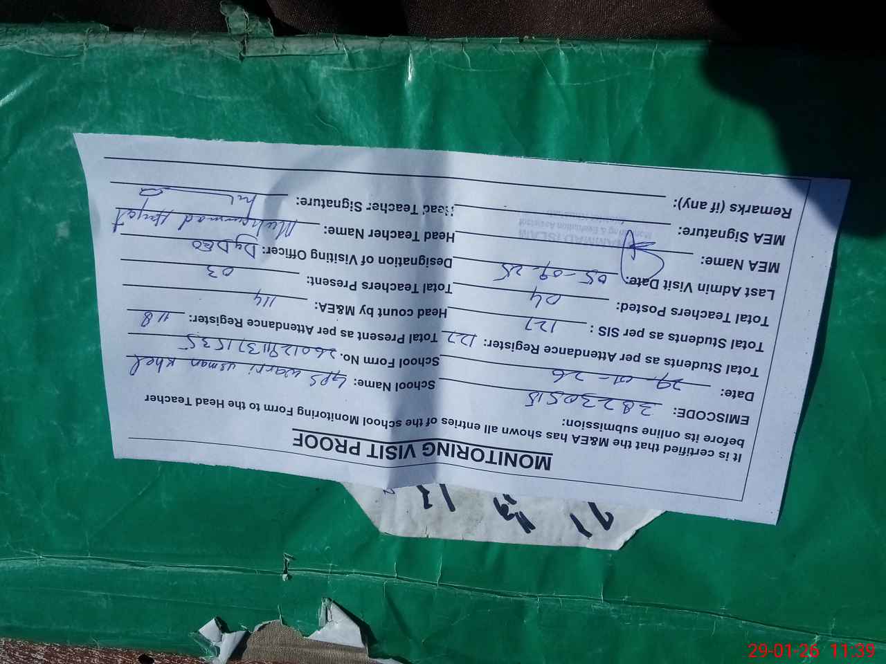 | Attendance Register | Head Teacher | MEA with School | Visit Proof |