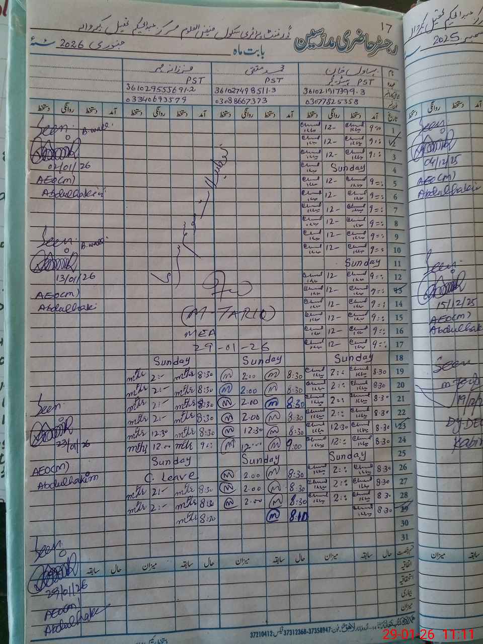 | Name: BH**** KH**** Designation: (School Headmaster's/Headmistress's) PST Phone/Cell Number: 03**** |