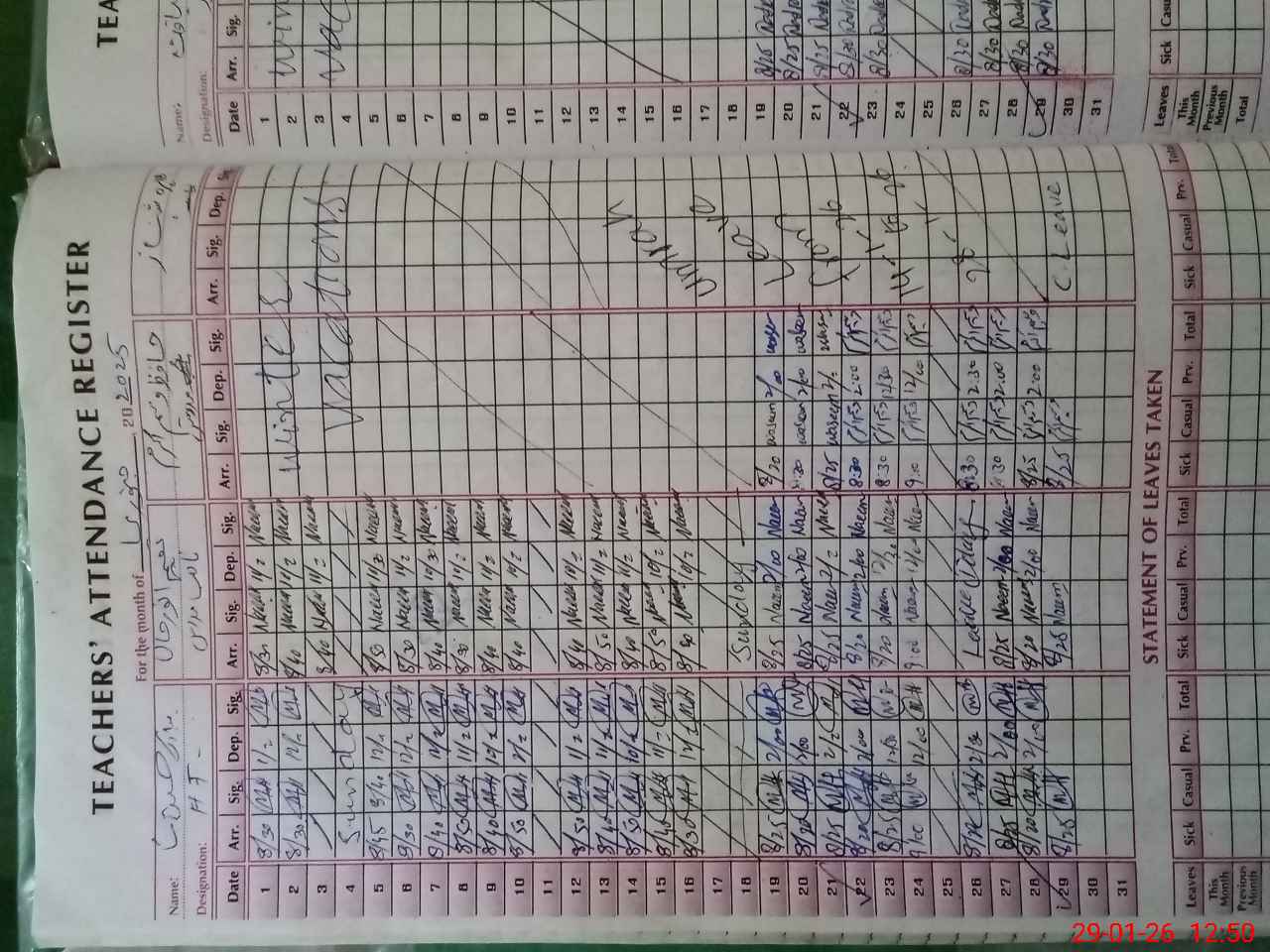 | CNIC | Full Name | Designation | R/C | Absence During Last Calender Month |