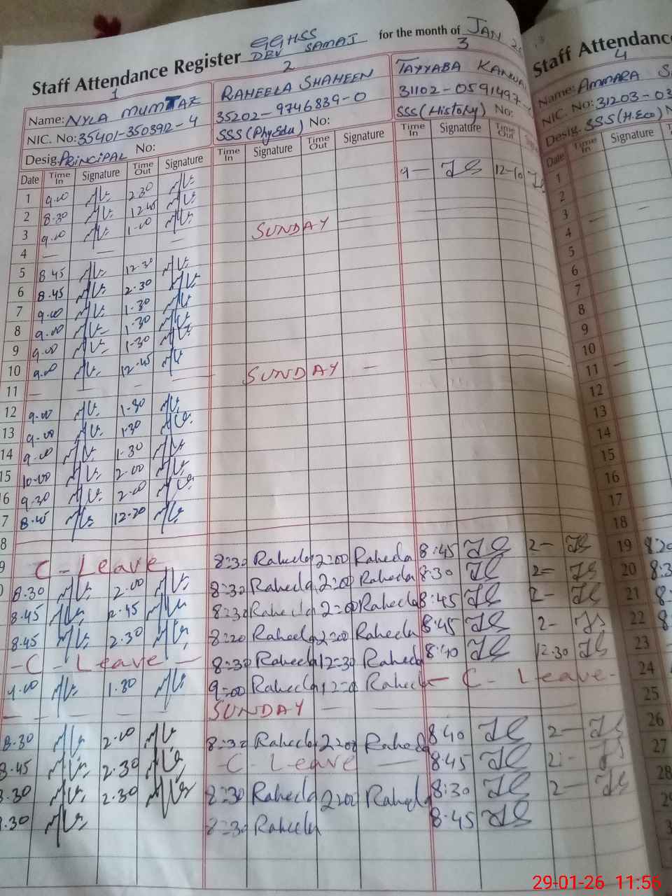 | CNIC | Full Name | Designation | R/C | Absence During Last Calender Month |