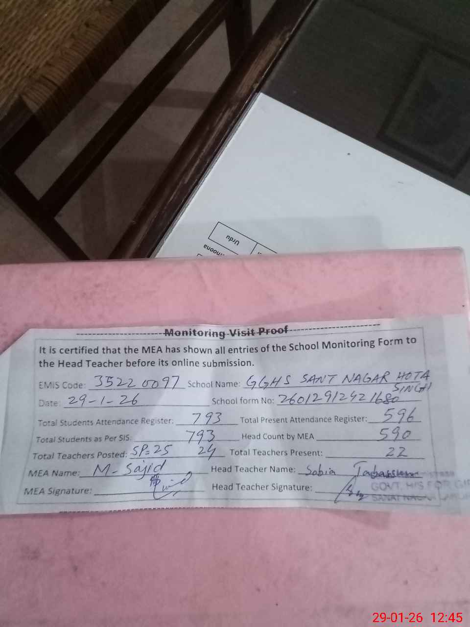 | EMIS Code: 35220097 | Name of School: GGHS SANT NAGAR HOTA SINGH ROAD | |||