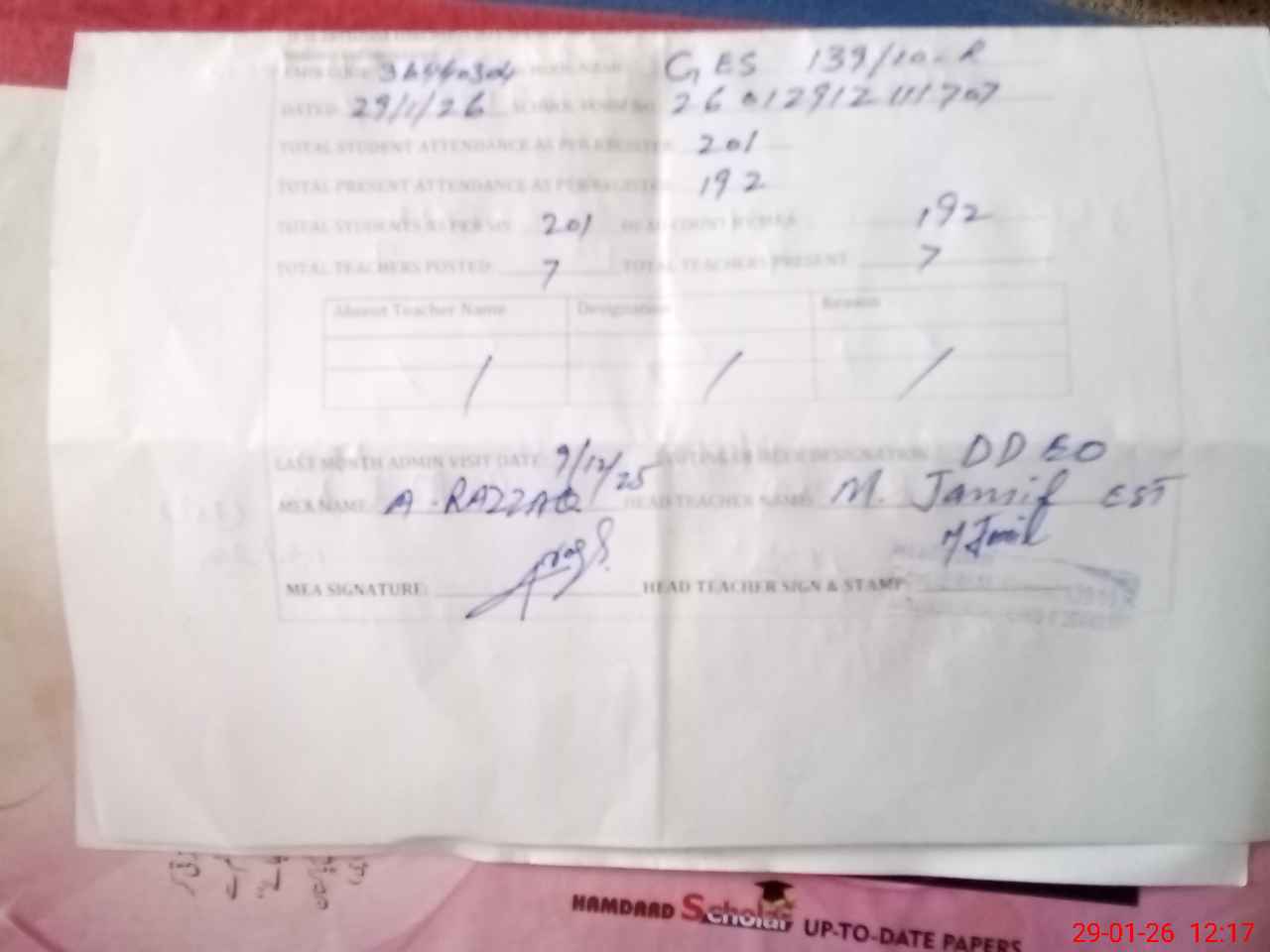 | EMIS Code: 36440304 | Name of School: GES 139/10-R QADEEM JAHANIAN | |||