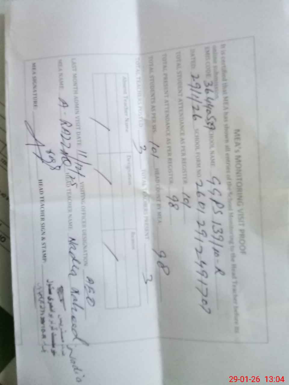 | EMIS Code: 36440539 | Name of School: GGPS 139/10-R QADEEM, JAHANIAN | |||