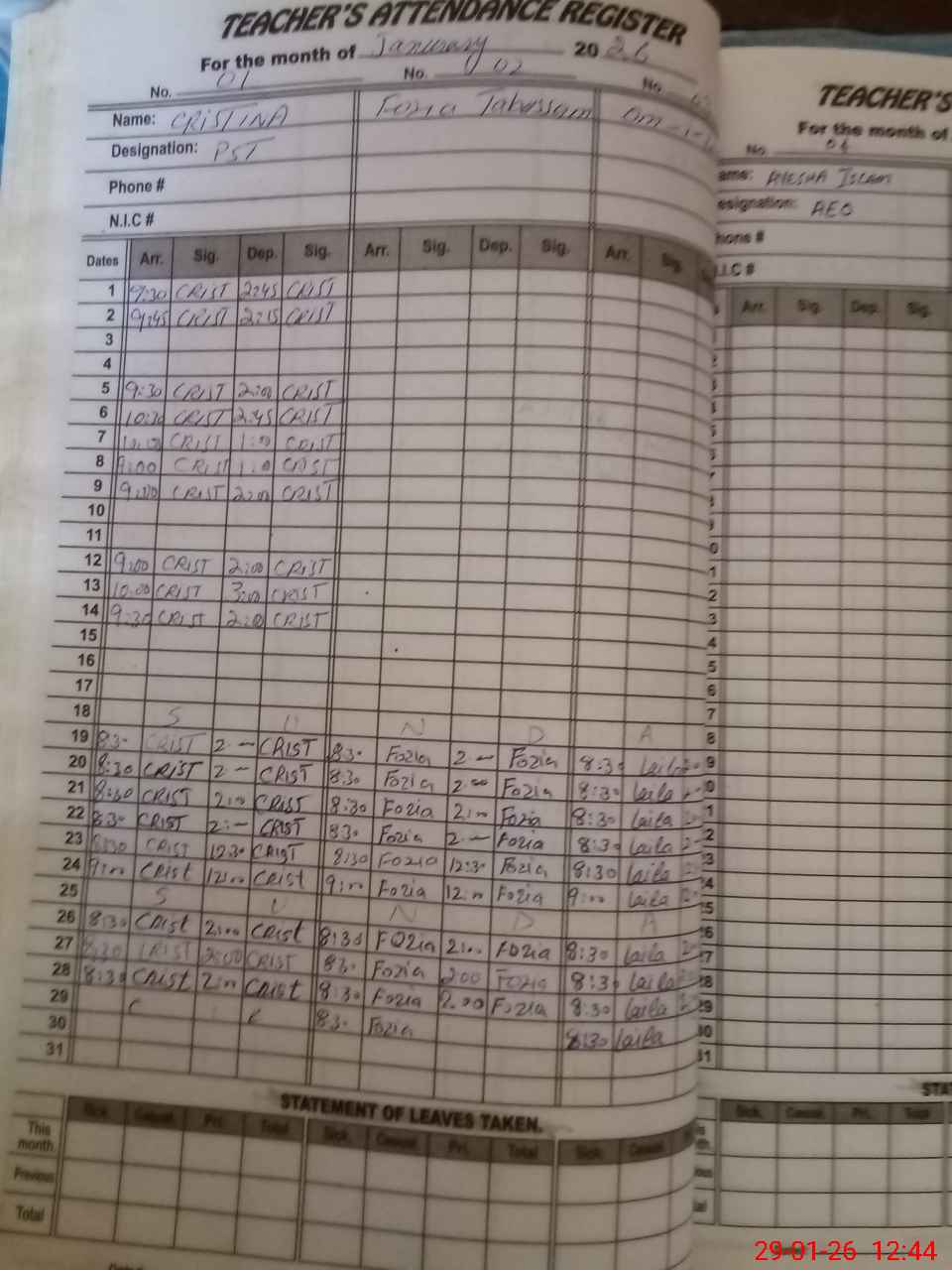 | Name: CR**** Designation: (School Headmaster's/Headmistress's) PST Phone/Cell Number: 03**** |