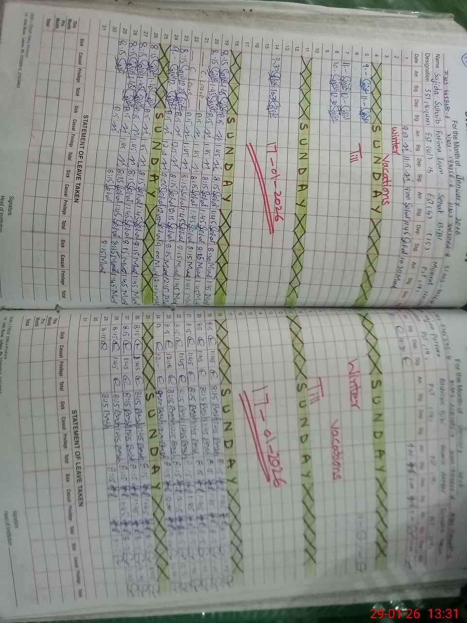 | No. of Students Present - Male | 0 | 0 | 0 | 0 | 0 | 0 | 0 | 0 | 0 | 0 | 0 | |||||