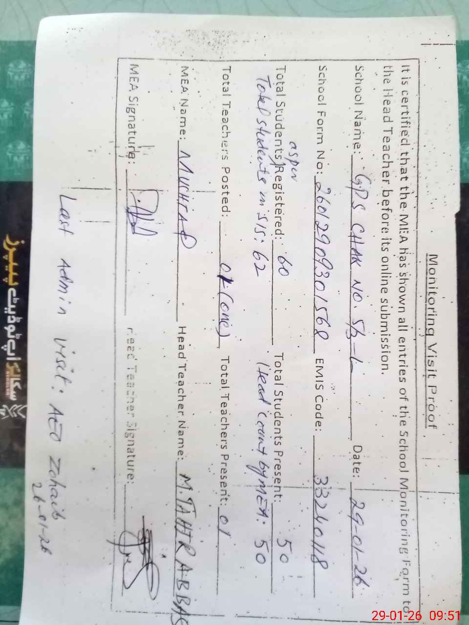 | EMIS Code: 33240118 | Name of School: GPS CHAK NO 5/3 L | |||