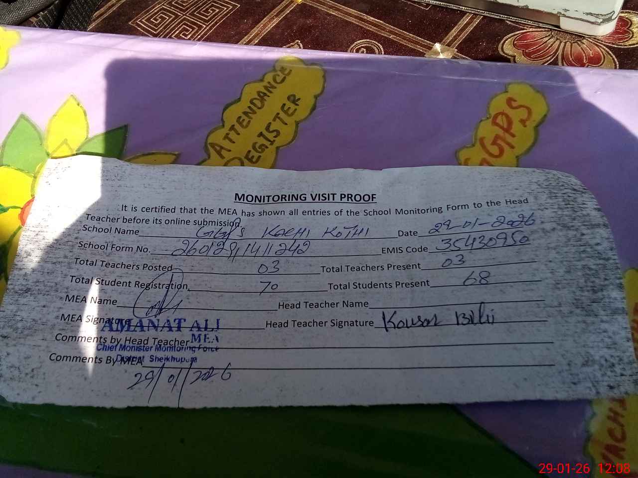 | EMIS Code: 35430950 | Name of School: GGPS KACHI KOTHI | |||