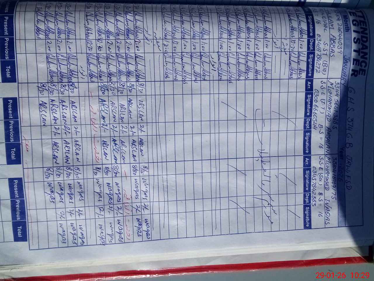 | Name: GH**** AB**** Designation: (School Headmaster's/Headmistress's) SST (Bio) Phone/Cell Number: 03**** |