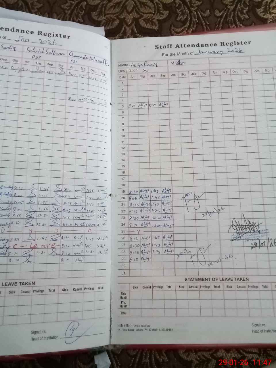 | Remarks (Use Separate Page if Required): HT Faryal Amjad PST is on official training regarding fire safety training in GHS Dina | |||||