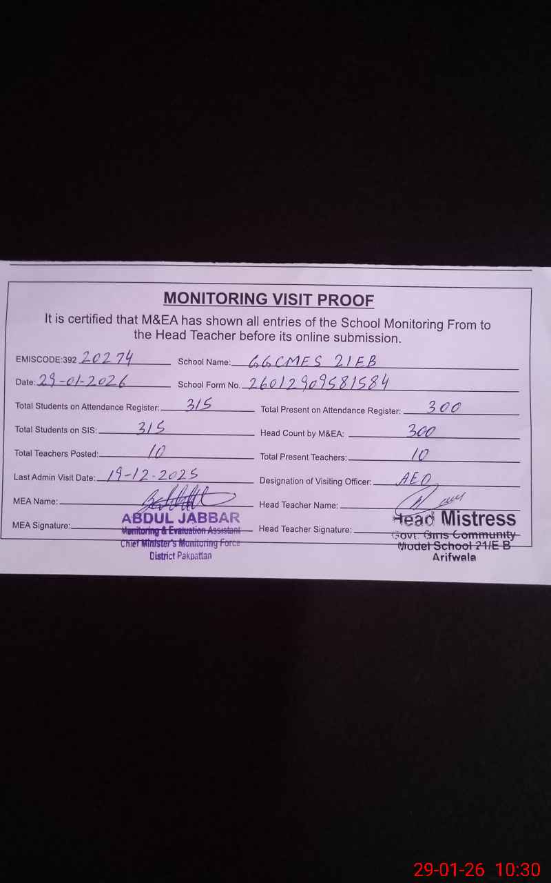 | District: PAKPATTAN | Tehsil: ARIFWALA | Markaz: ARIFWALA 2 - FEMALE | Level: Middle | |