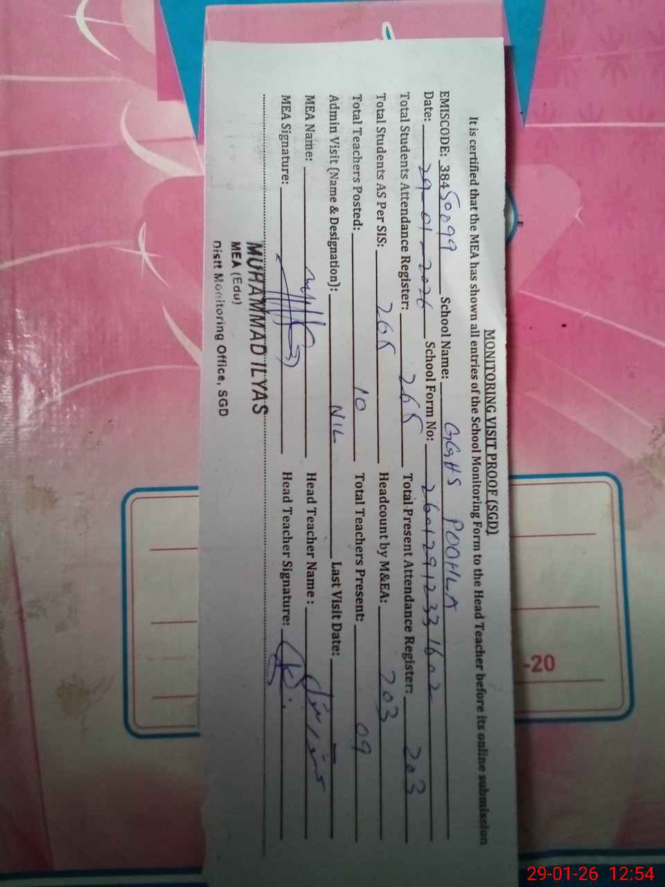 | EMIS Code: 38450099 | Name of School: GGHS POOHLA | |||