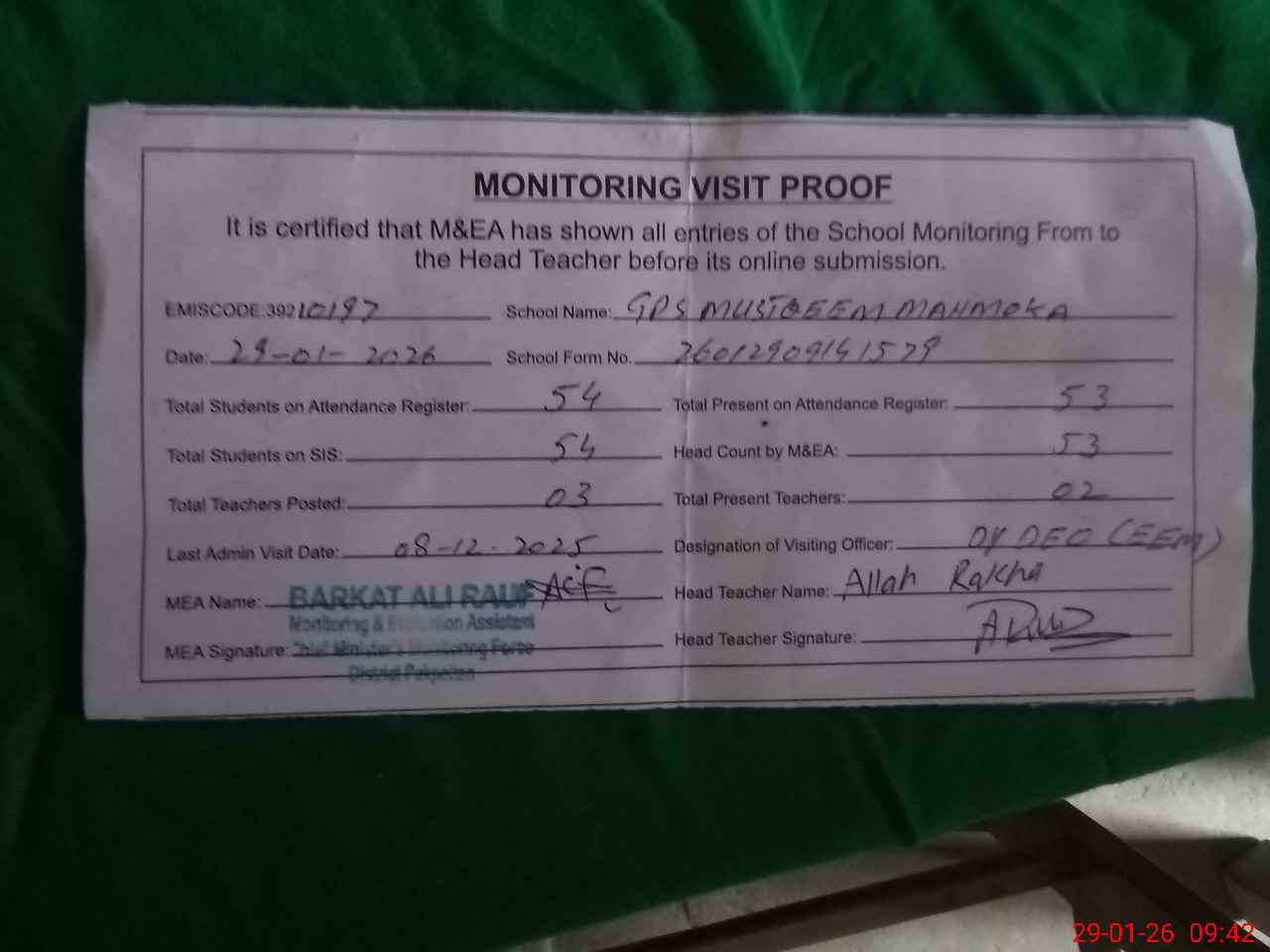 | EMIS Code: 39210197 | Name of School: GPS MUSTAQEEM MAHMONKA P/O PAKPATTAN | |||