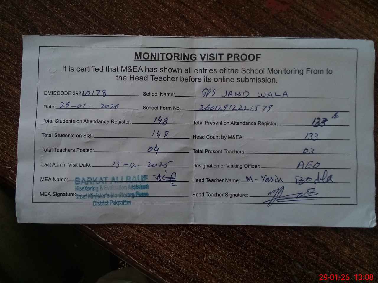 | EMIS Code: 39210178 | Name of School: GPS JAND WALA PO PAKPATTAN | |||