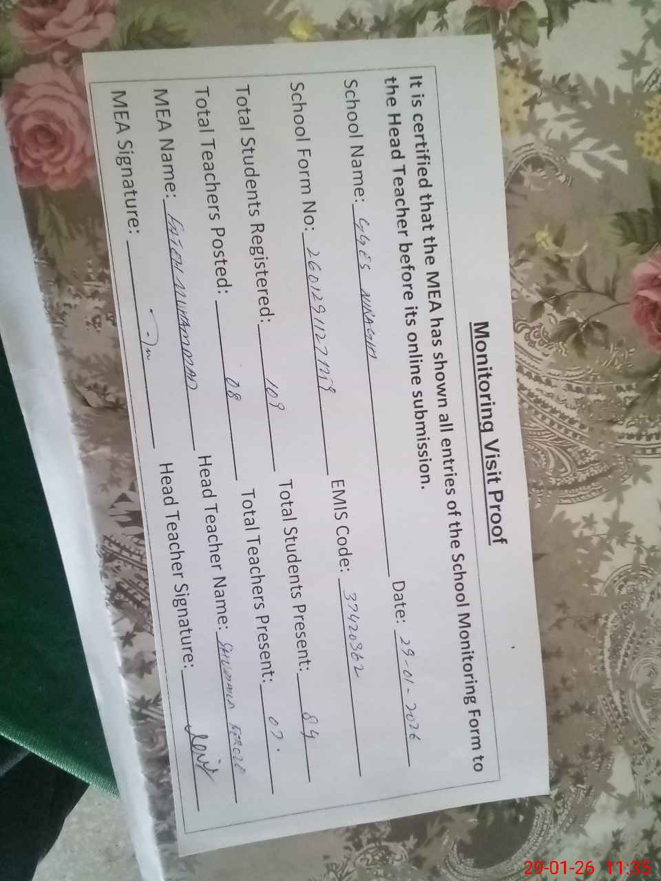 | Certified that this School was Inspected by the Undersigned MEA/DMO Today and the Information Stated Above is as Per Record. | |||||