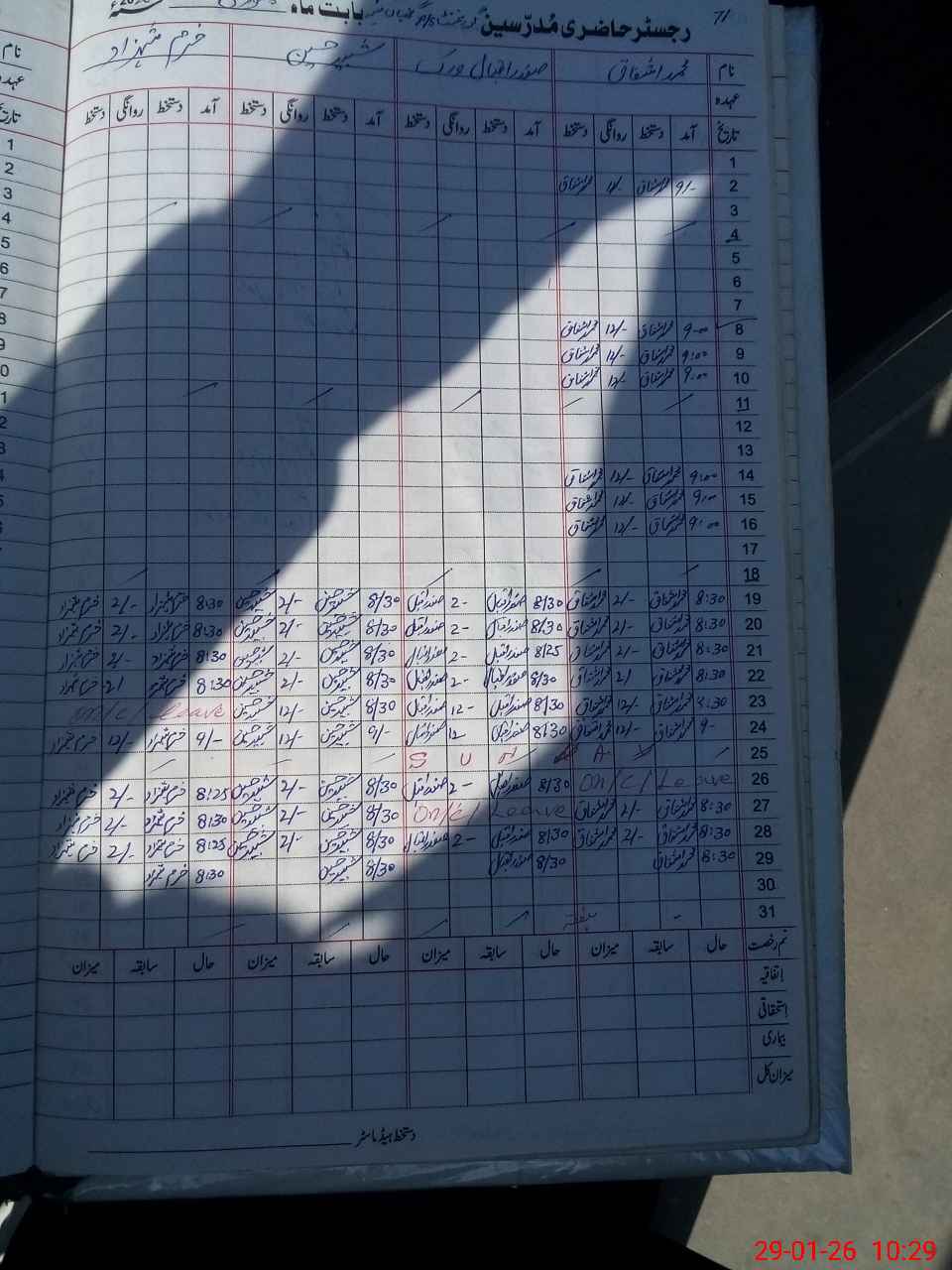 | CNIC | Full Name | Designation | R/C | Absence During Last Calender Month |