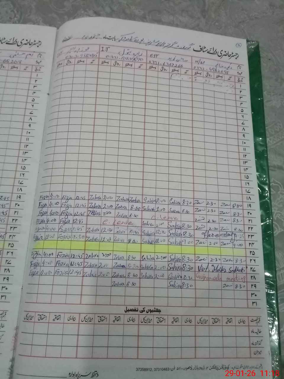 | 33**** | Uz**** Sh**** | PST Arts | Regular | 0 | 0 | 0 | 0 | 0 | 0 | 0 | 0 | 0 | Casual |