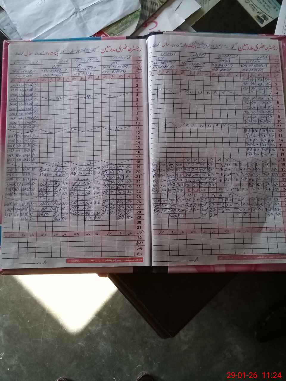 | CNIC | Full Name | Designation | R/C | Absence During Last Calender Month |