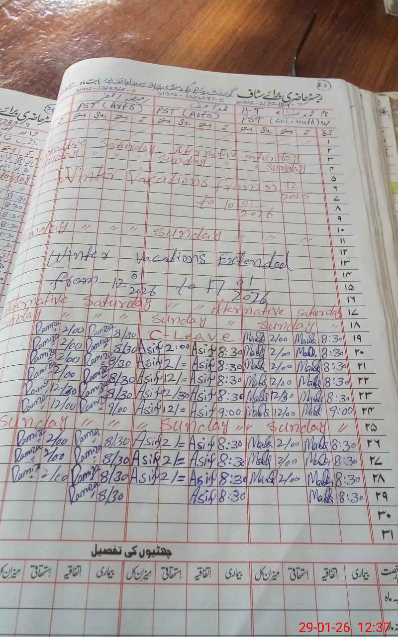 | Name: MU**** MA**** Designation: (School Headmaster's/Headmistress's) PST Phone/Cell Number: 03**** |