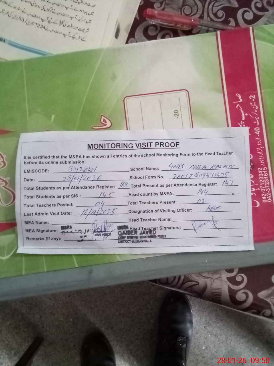 | EMIS Code: 34120401 | Name of School: GMPS OUJLA KALAN | |||