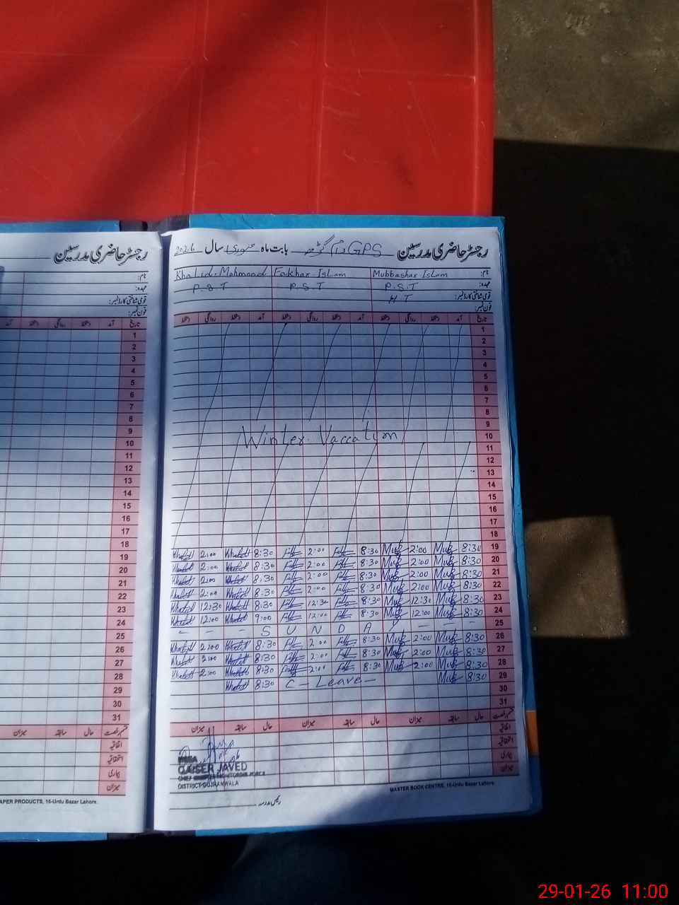 | CNIC | Full Name | Designation | R/C | Absence During Last Calender Month |