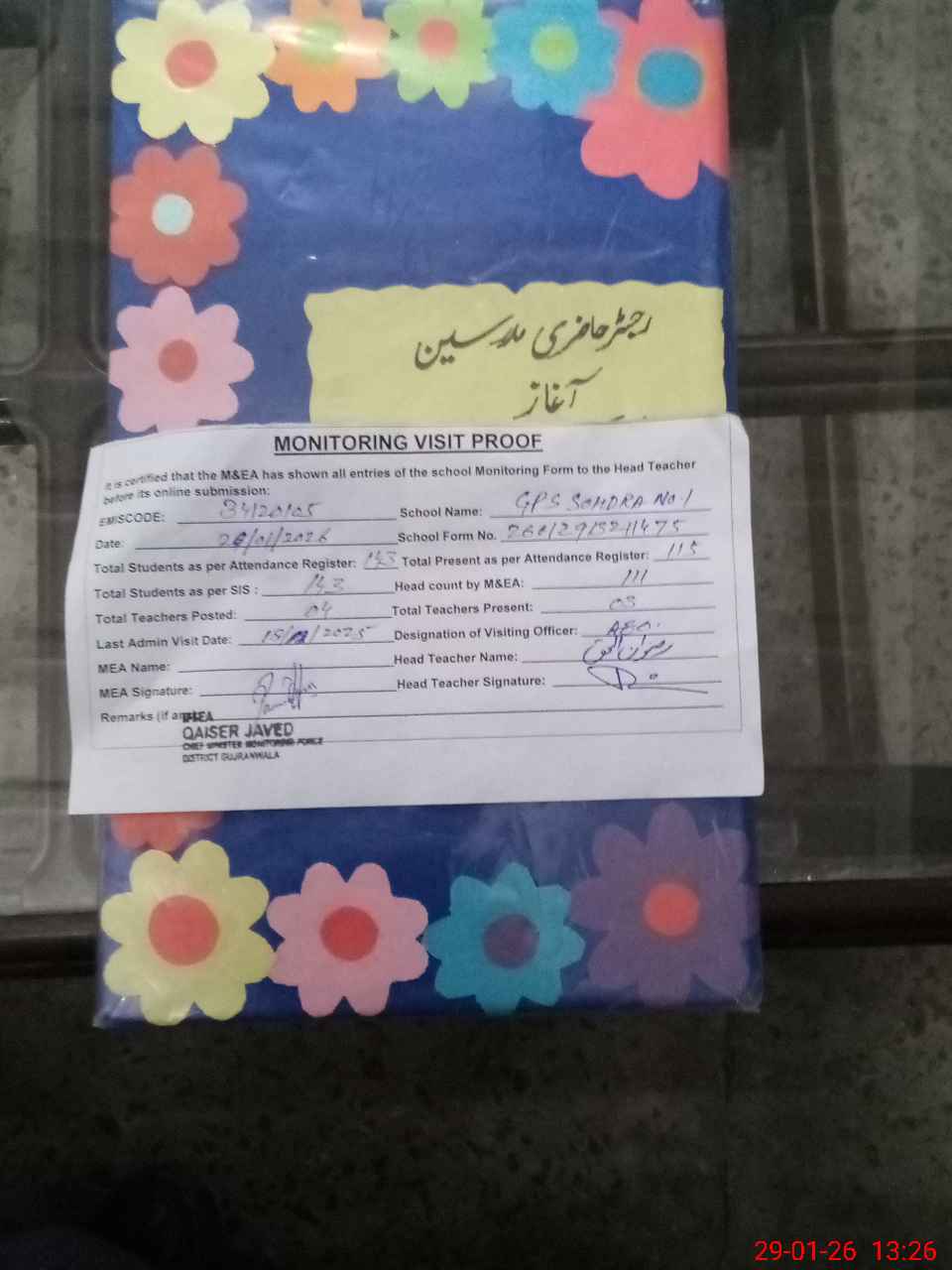 | EMIS Code: 34120105 | Name of School: GPS SOHDRA NO.1 | |||