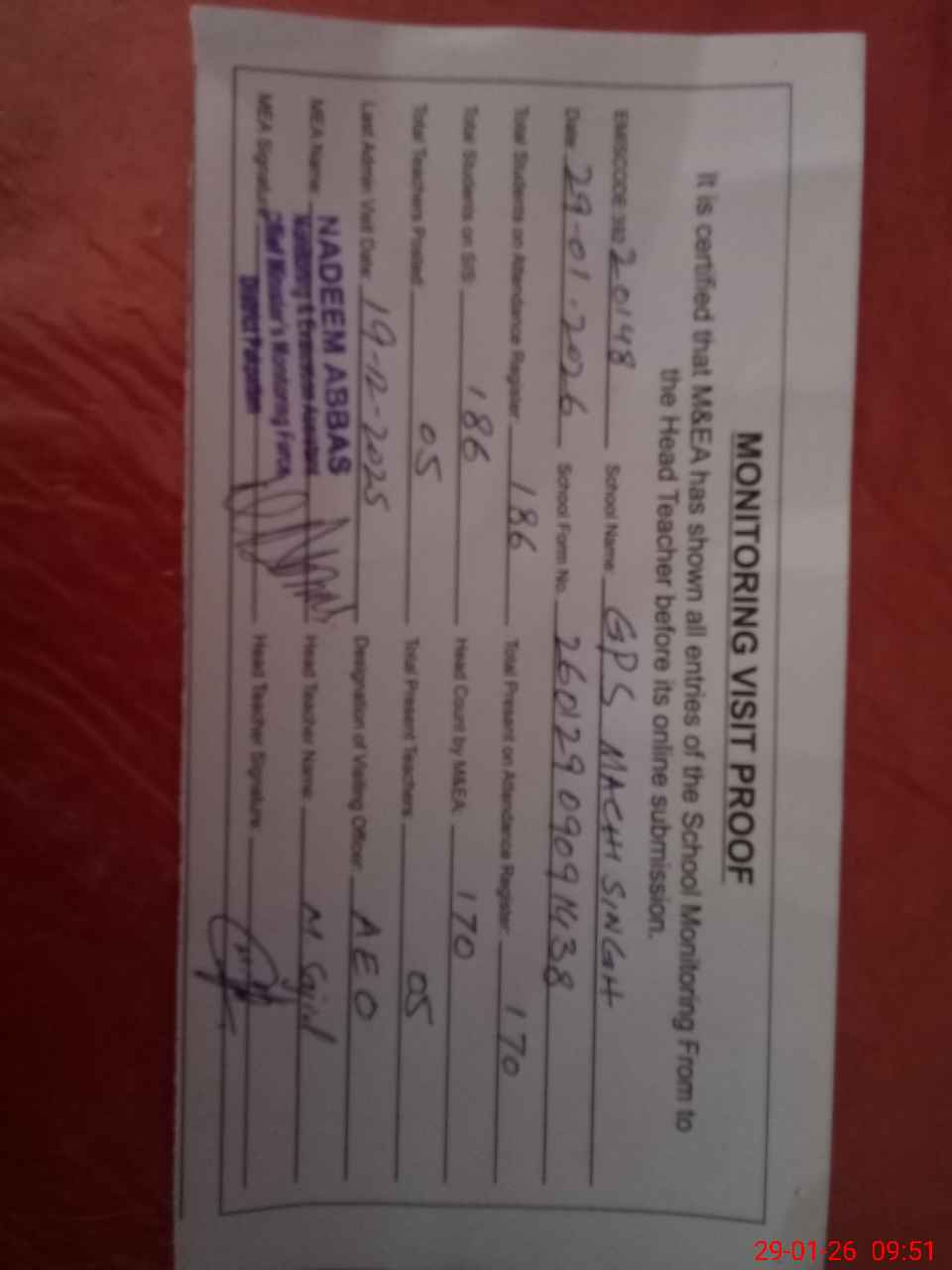 | EMIS Code: 39220148 | Name of School: GPS MACHHI SINGH | |||