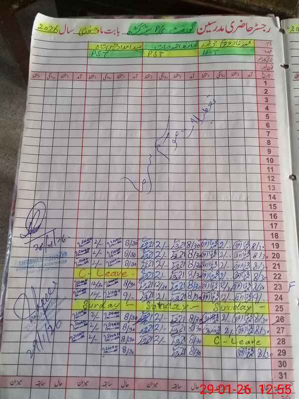 | CNIC | Full Name | Designation | R/C | Absence During Last Calender Month |