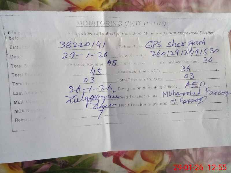 | EMIS Code: 38220141 | Name of School: GPS SHER GARH | |||