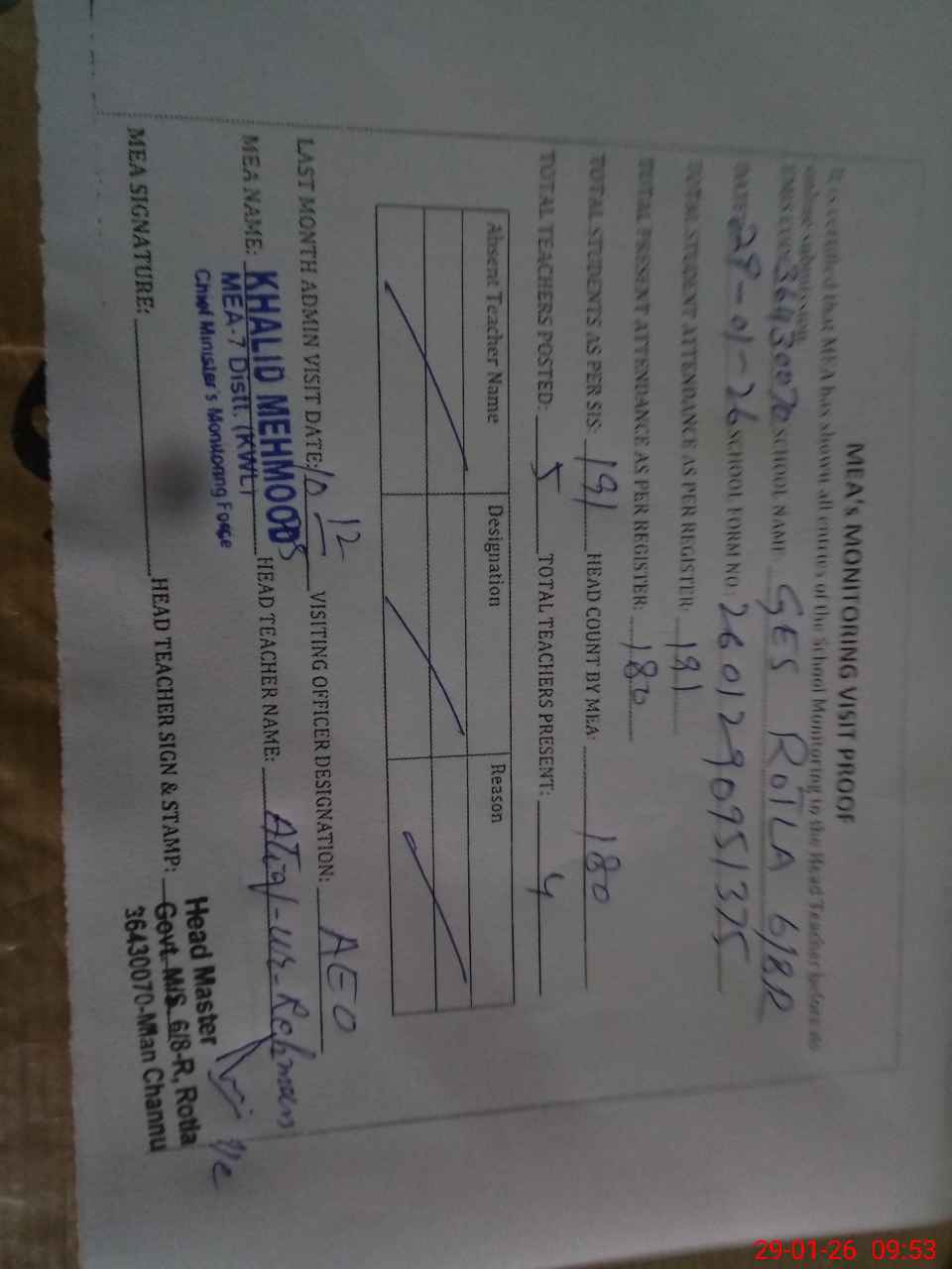 | Certified that this School was Inspected by the Undersigned MEA/DMO Today and the Information Stated Above is as Per Record. | |||||