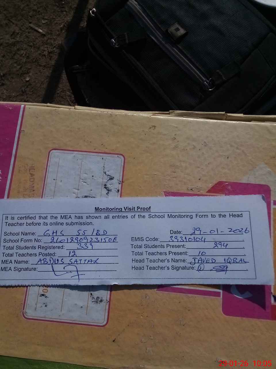 | EMIS Code: 39310104 | Name of School: GHS CHAK NO. 55/BD | |||