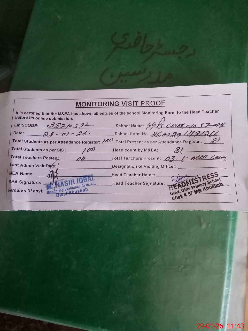 | EMIS Code: 38210592 | Name of School: GGPS CHAK NO. 57 MB | |||