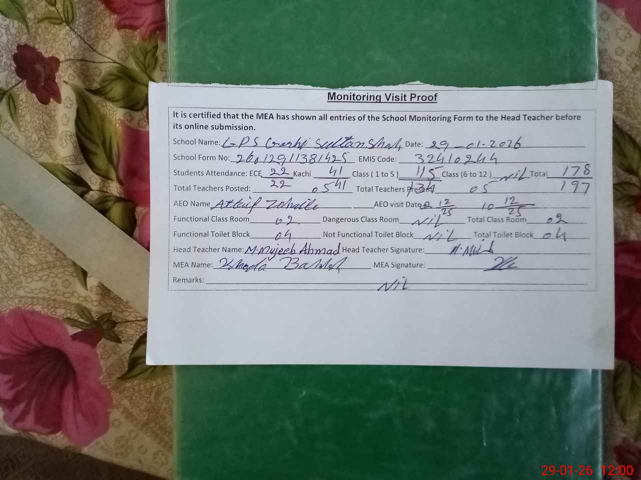 | EMIS Code: 32410244 | Name of School: GPS GARHI SULTAN SHAH | |||
