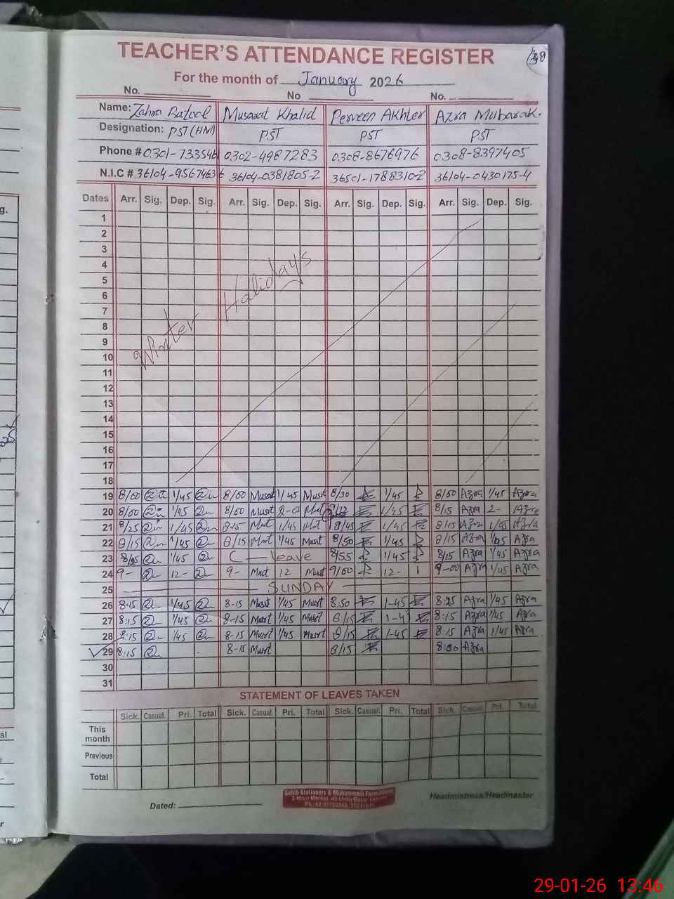 | Name: Za**** Ba**** Designation: (School Headmaster's/Headmistress's) PST Phone/Cell Number: 03**** |