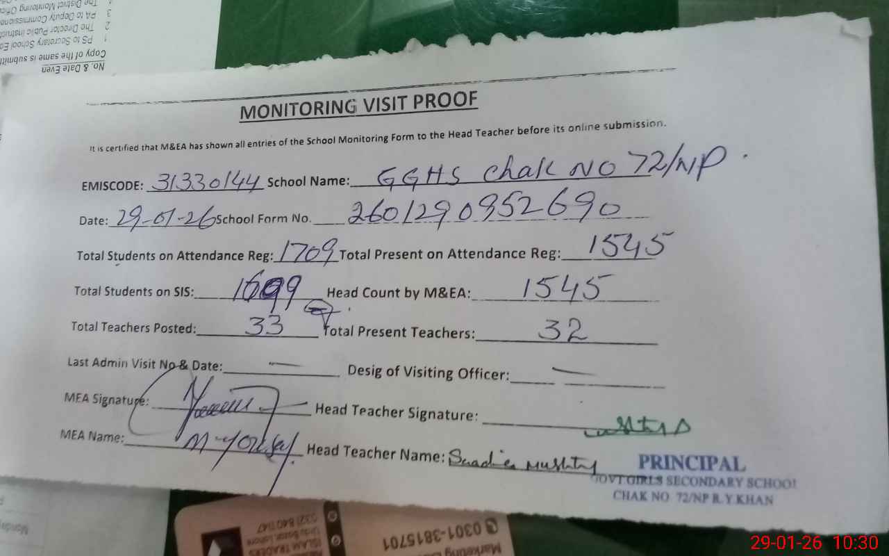 | Attendance Register | Head Teacher | MEA with School | Visit Proof |