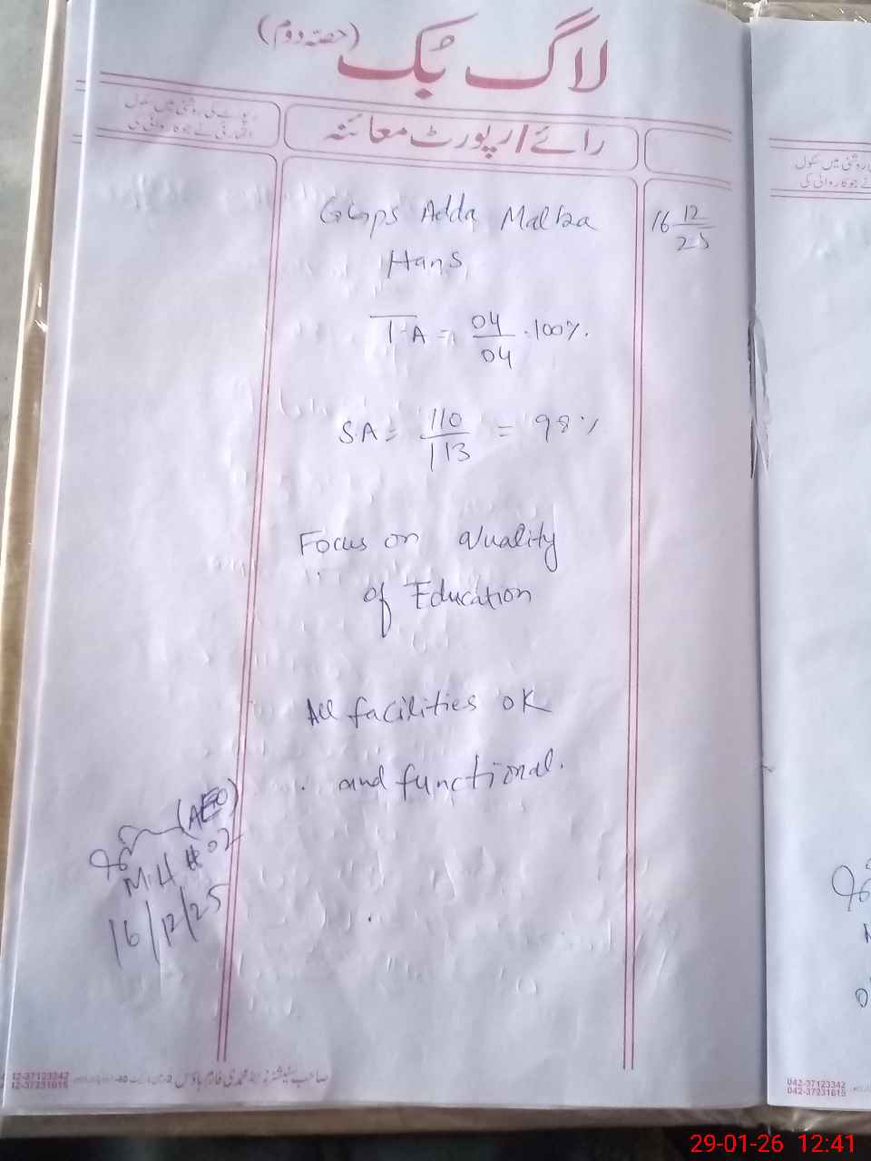 | Certified that this School was Inspected by the Undersigned MEA/DMO Today and the Information Stated Above is as Per Record. | |||||