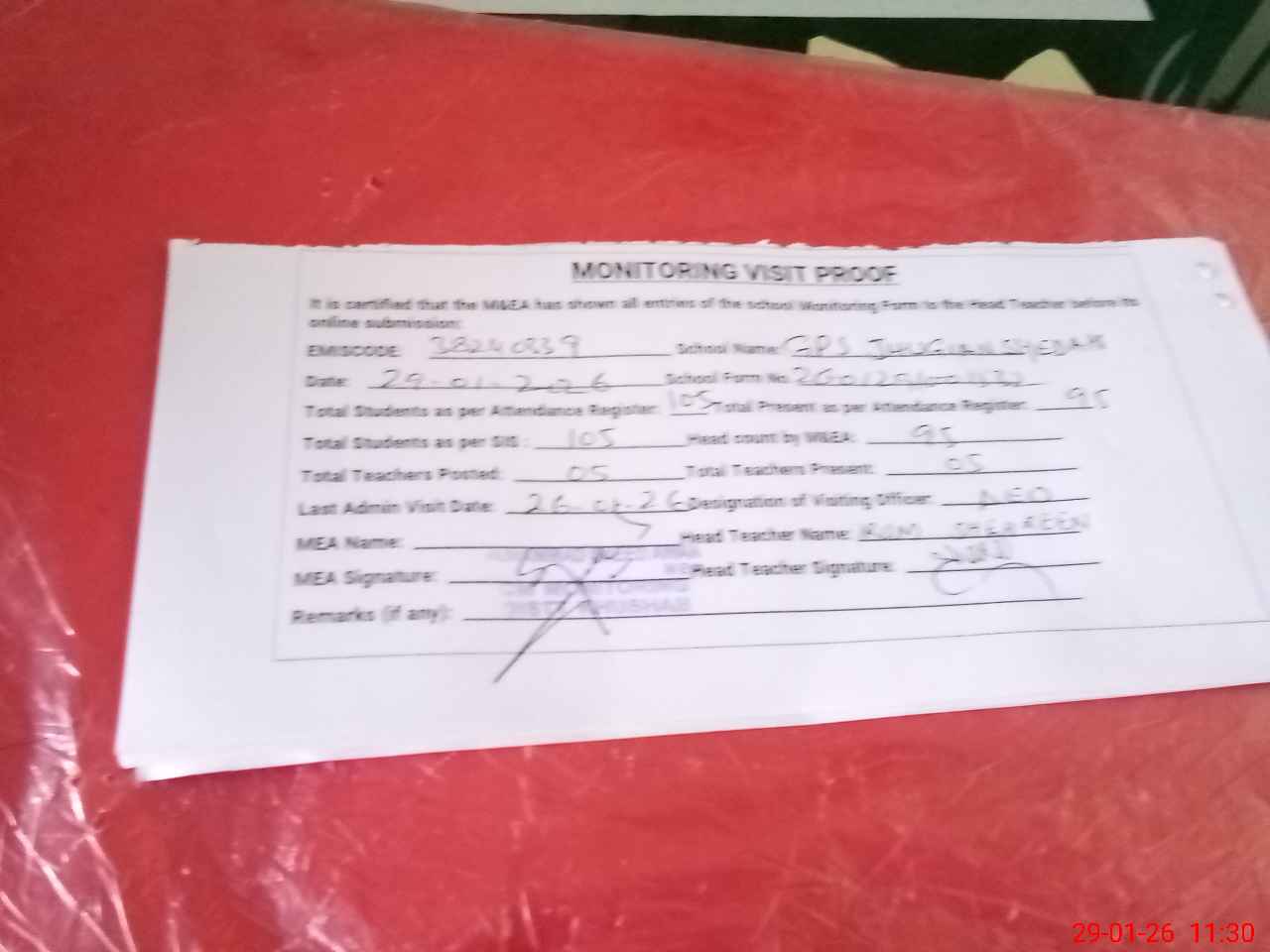 | Remarks (Use Separate Page if Required): Students on SIS Qty 105 Last admin visit On 26 January 2026 by AEO | |||||