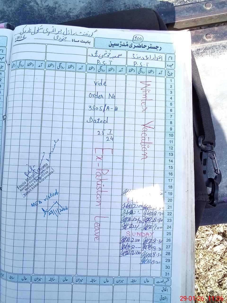 | Name: If**** AH**** MA**** Designation: (School Headmaster's/Headmistress's) PST Phone/Cell Number: 03**** |