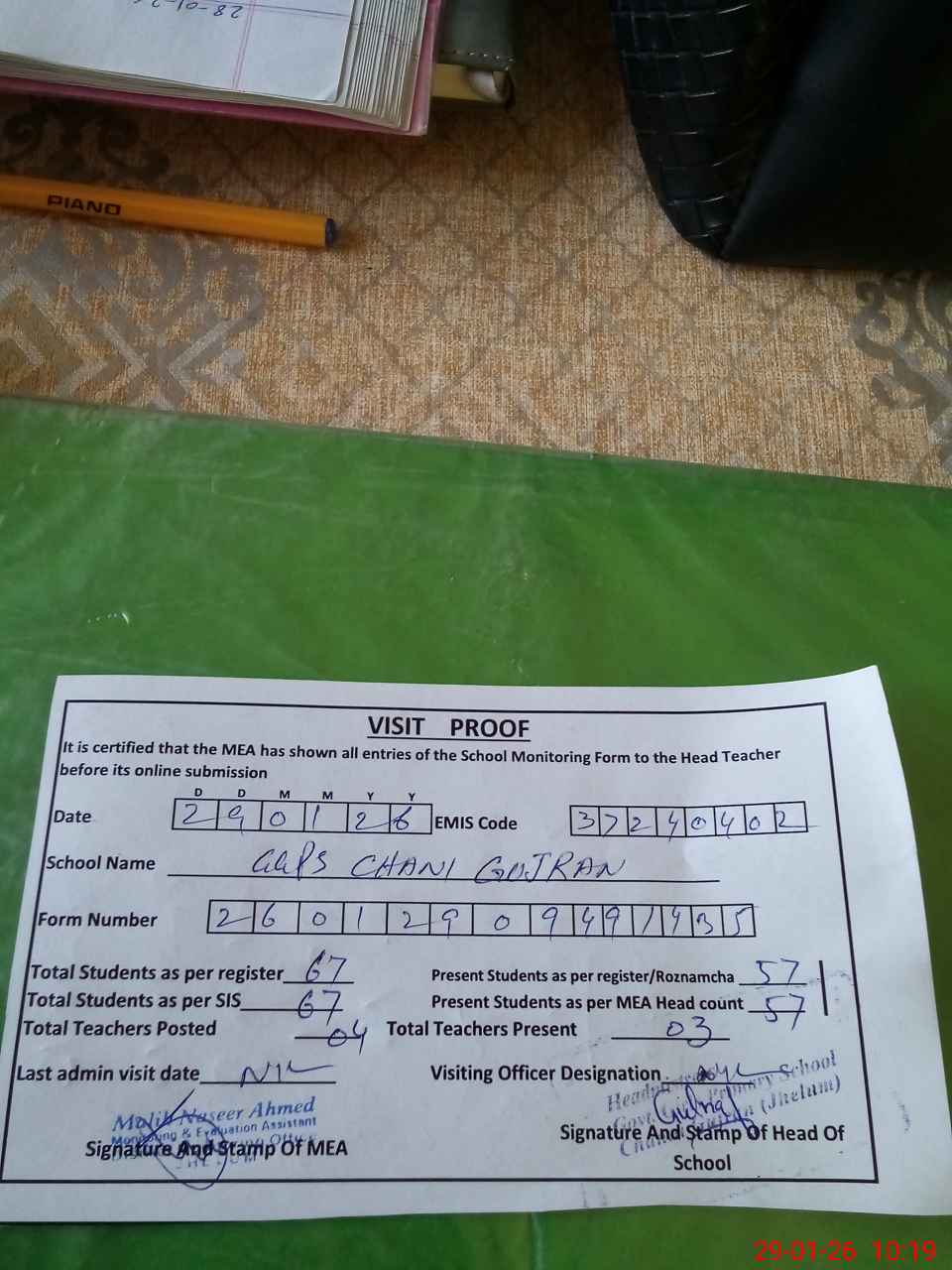 | EMIS Code: 37240402 | Name of School: GGPS CHHANI GUJRAN | |||