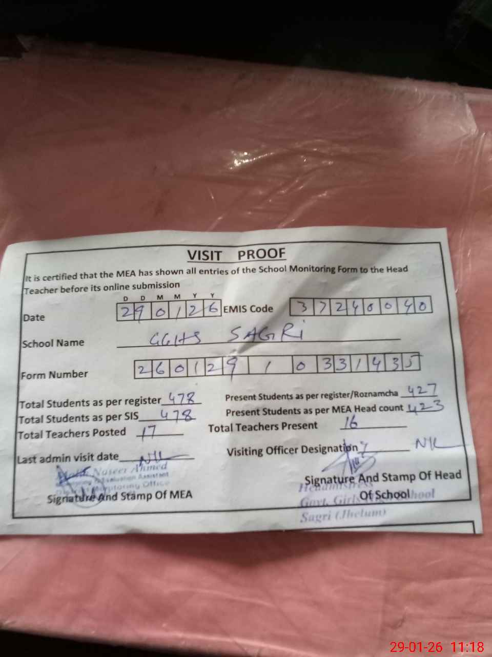 | EMIS Code: 37240040 | Name of School: GGHS SAGRI | |||