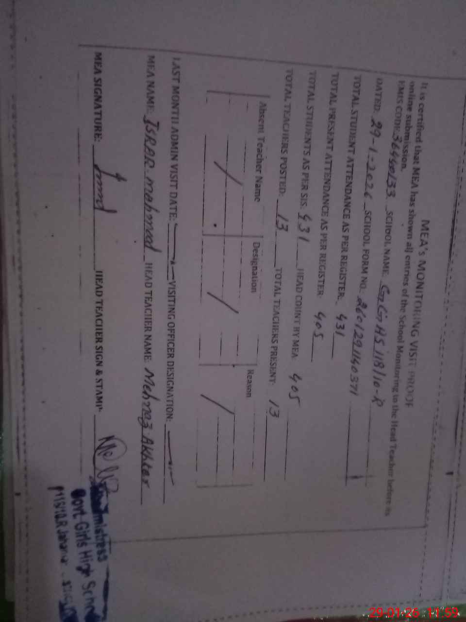 | EMIS Code: 36440133 | Name of School: GGHS 118/10-R, JAHANIAN | |||
