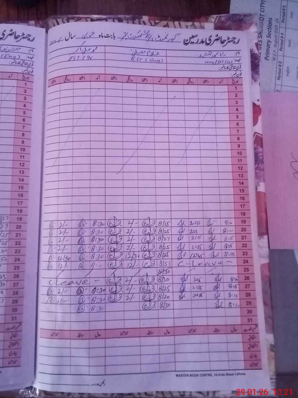 | CNIC | Full Name | Designation | R/C | Absence During Last Calender Month |