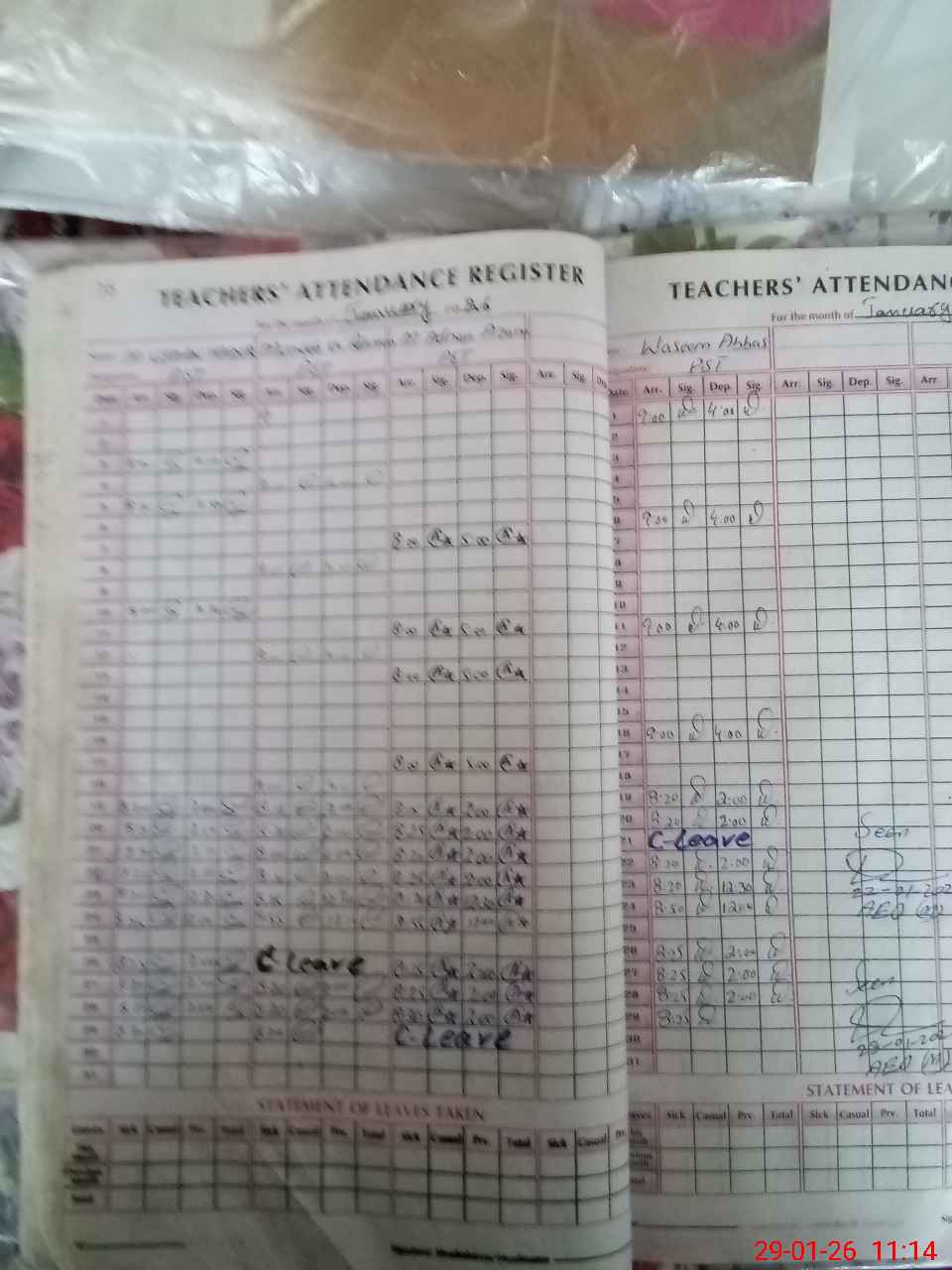 | Leave | Duty | Absent | Maternity | Medical | Ex- Pak |