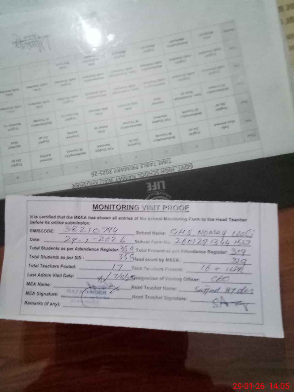 | EMIS Code: 38210794 | Name of School: GHS NAMAY WALI | |||