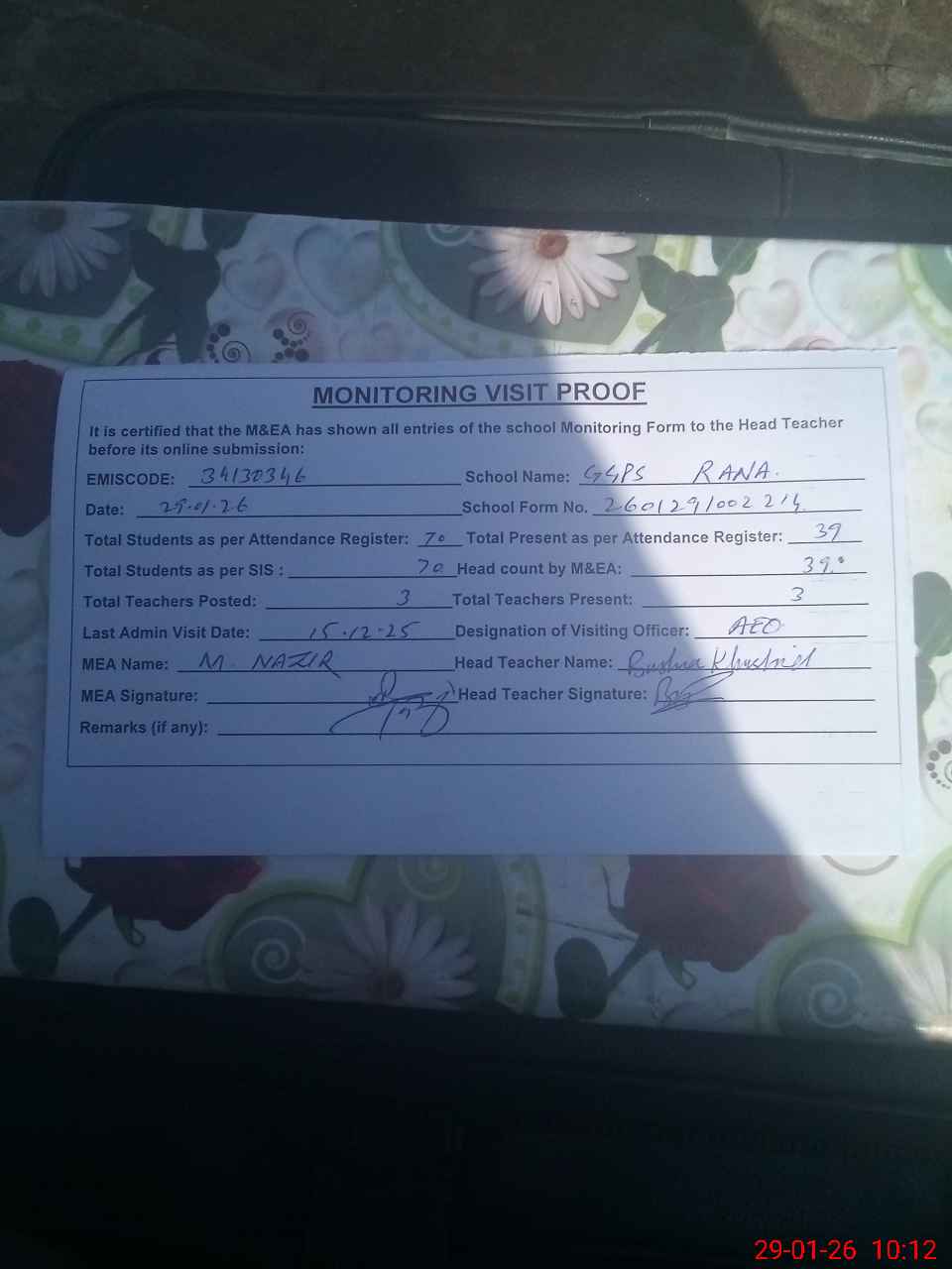 | EMIS Code: 34130346 | Name of School: GGPS RANA | |||