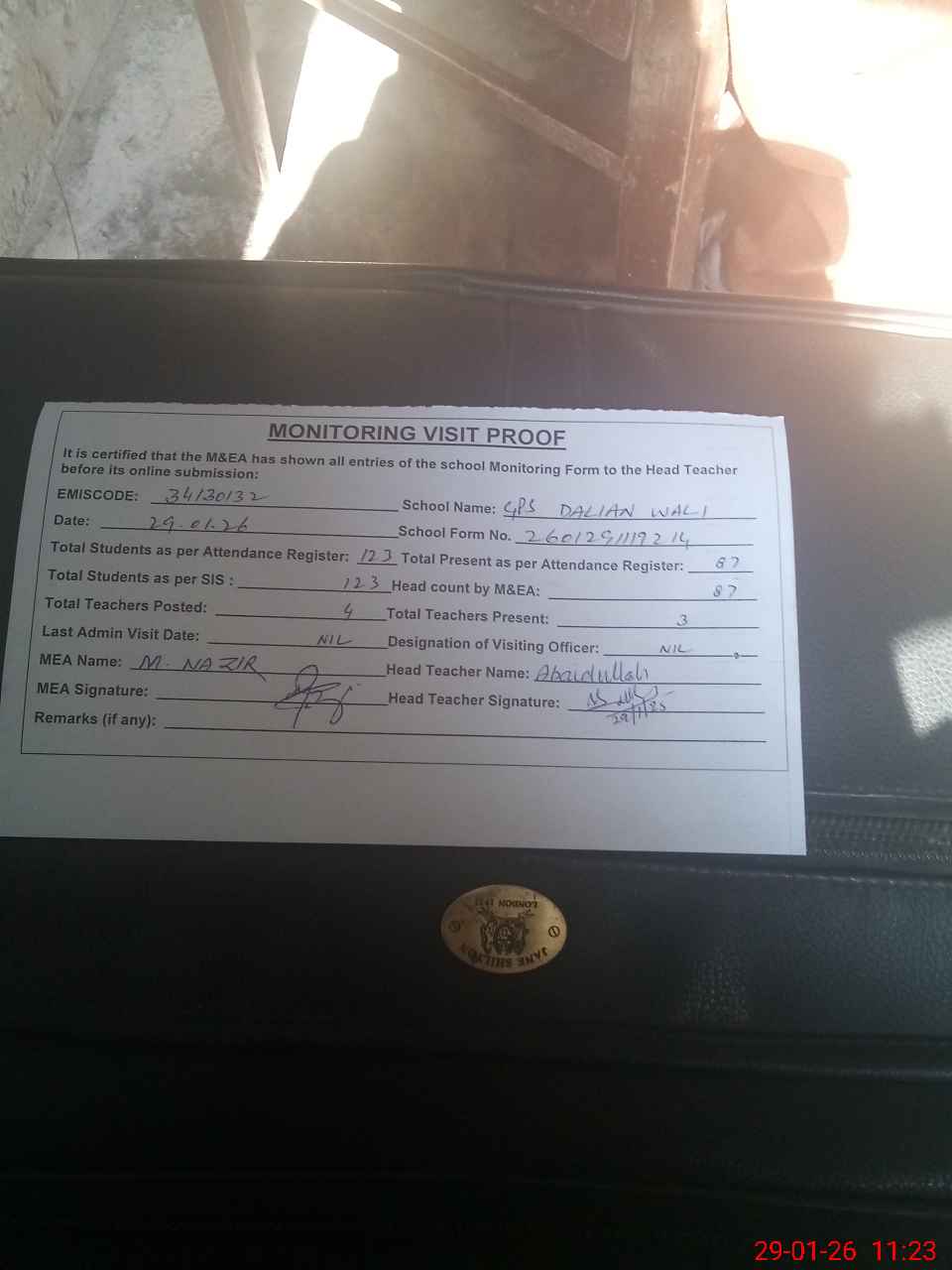 | EMIS Code: 34130132 | Name of School: GPS DALIAN WALI | |||