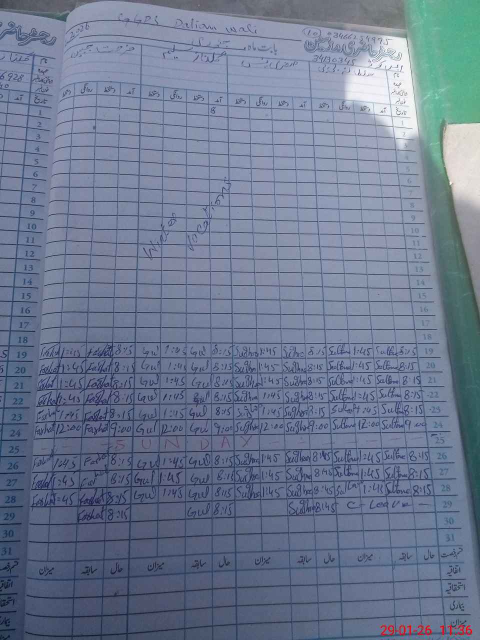 | CNIC | Full Name | Designation | R/C | Absence During Last Calender Month |