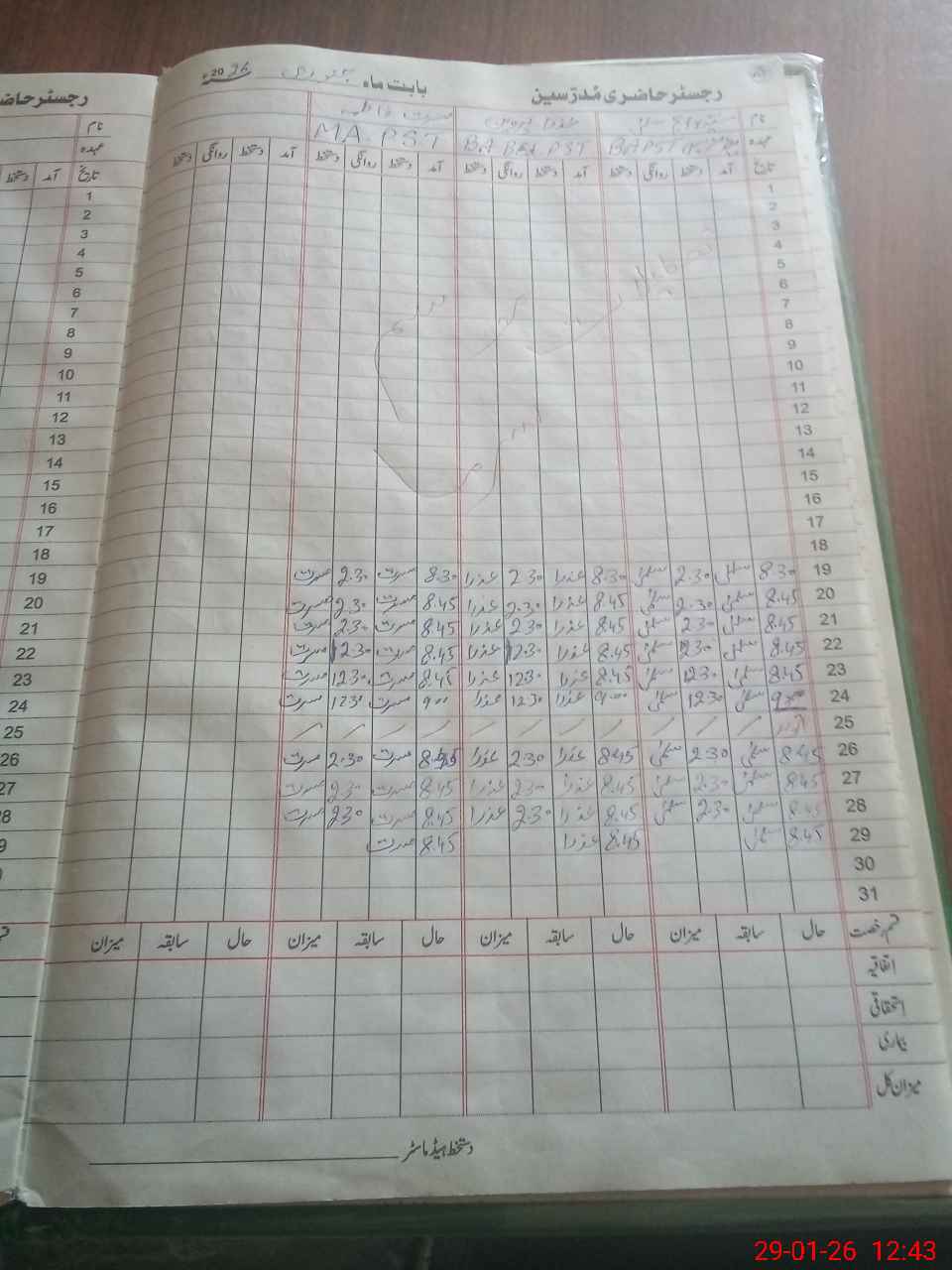 | CNIC | Full Name | Designation | R/C | Absence During Last Calender Month |