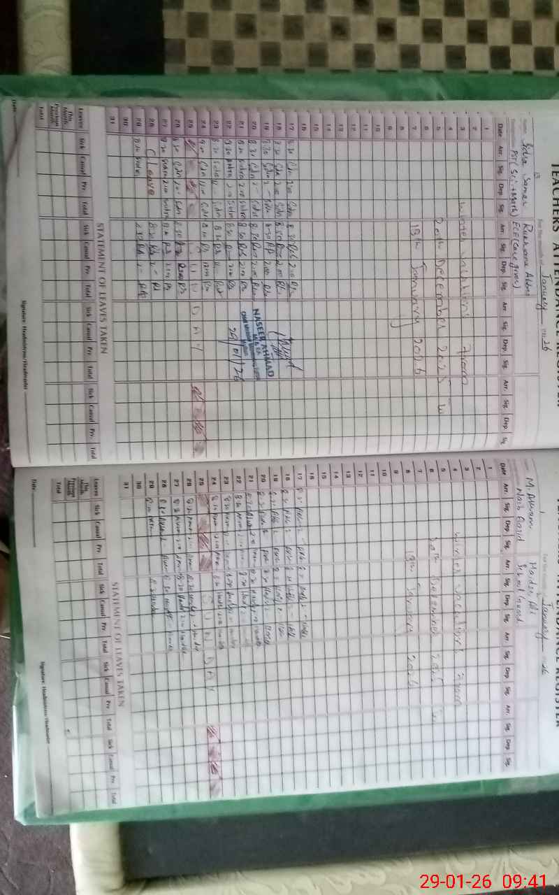 | Attendance Register | Head Teacher | MEA with School | Visit Proof |