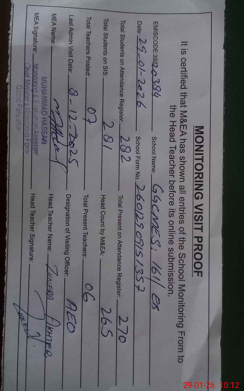 | EMIS Code: 39220384 | Name of School: GGCMES 161 EB ARIFWALA | |||